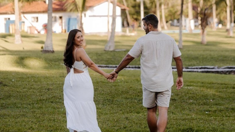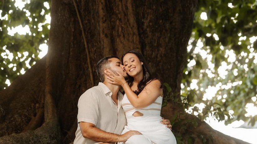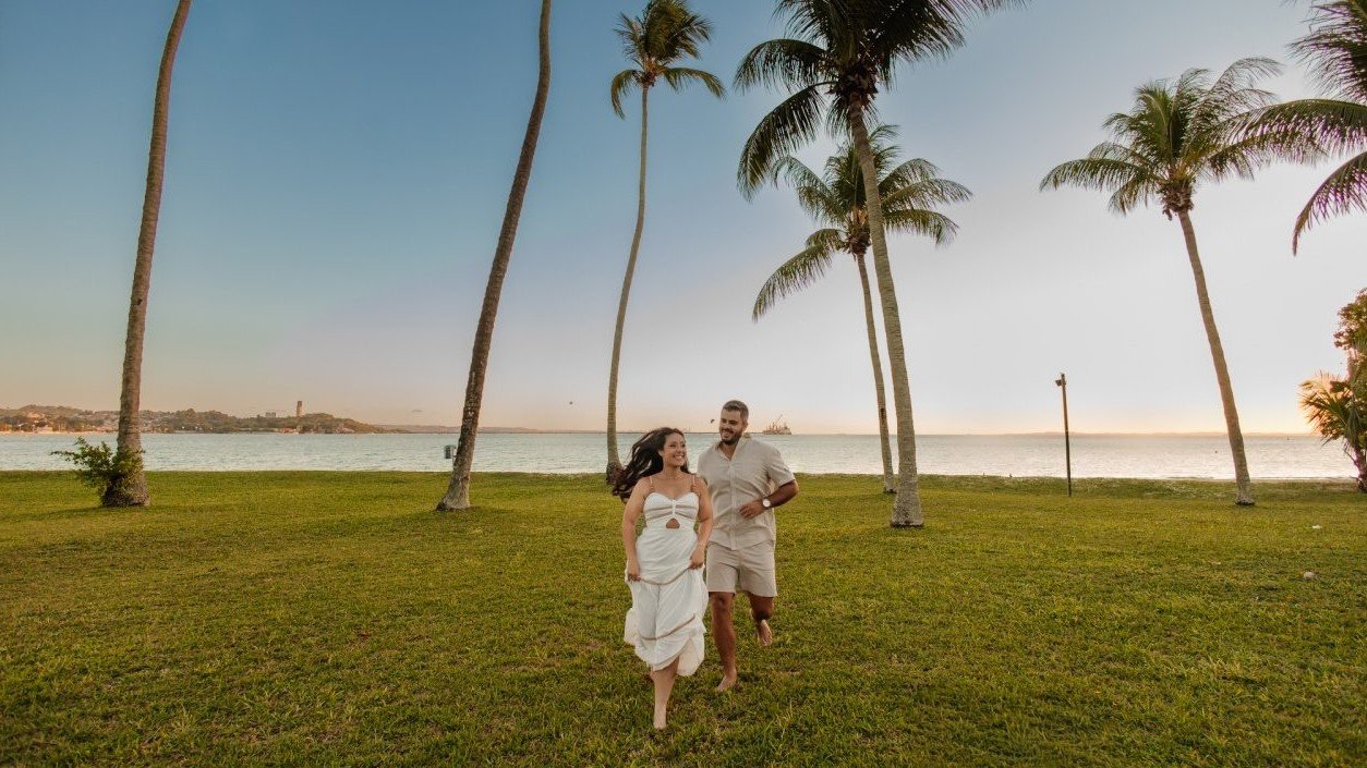 Natália e Matheus se conheceram em junho de 2012, no aniversário de uma grande amiga em comum e madrinha, Caroline Pinho. Naquele dia, talvez sem perceber, o destino já começava a escrever a história deles, mas foi em 12/10/2013, em um novo encontro proporcionado pela mesma amiga, que os olhares se cruzaram de forma diferente, e, desde então, nunca mais se separaram. O namoro começou em 14/11/2013 e, juntos, passaram a construir muito mais que uma relação, construíram sonhos. Foram companheiros na graduação em Direito, na Faculdade Baiana de Direito, colaram grau na mesma turma e celebraram juntos a aprovação na OAB. No dia 12/10/2023, exatamente dez anos após o reencontro que mudou suas vidas, Matheus pediu Natália em noivado na Praia do Havaizinho, em Itacaré/BA, na presença dos padrinhos Lucas Carahy, Bruno Rodrigues e Maria Luísa. Como se não bastasse dividirem a vida e os sonhos, também conquistaram juntos a aprovação no concurso para o Departamento de Polícia Técnica em 2024, onde hoje atuam como Peritos Técnicos, mais uma conquista compartilhada, fruto de parceria, dedicação e amor. Há um ano passaram a morar juntos, onde seguem escrevendo, diariamente, novos capítulos dessa linda jornada. E, no dia 29/08/2026, após doze anos de história, crescimento e cumplicidade, Natália e Matheus celebrarão o amor que os une diante de Deus, de seus familiares, padrinhos e das amizades construídas ao longo desses anos, com a certeza de que o “para sempre” deles já começou há muito tempo.
